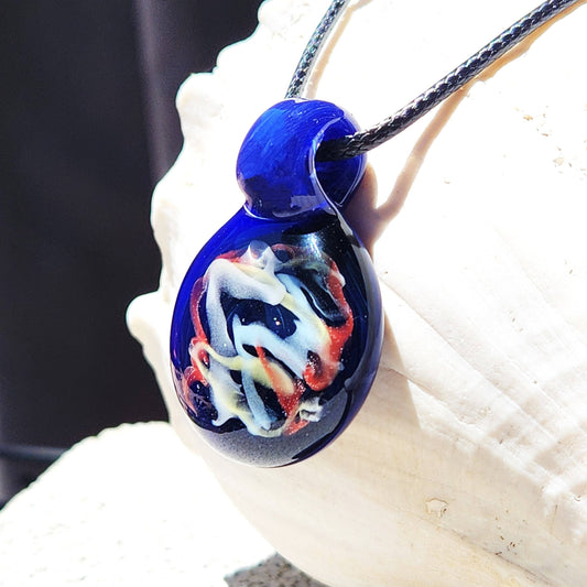 Handmade Glass Pendant – Abstract Color Swirl on Blue