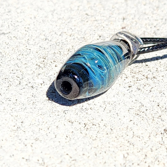 Blue Spiral Glass Pendant with Pure Silver Fuming