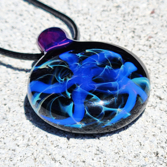I specialize in creating cremation jewelry as well as our galaxy pendants, bracelets, and our ornaments, often incorporating vibrant colors and intricate designs. This craft requires precise hand movements, a deep understanding of the properties of glass, and the ability to work with high temperatures. Glassblowing jewelry-making combines the traditional art of glassblowing with the creativity and design skills of a jewelry maker to produce one-of-a-kind pieces of wearable art.