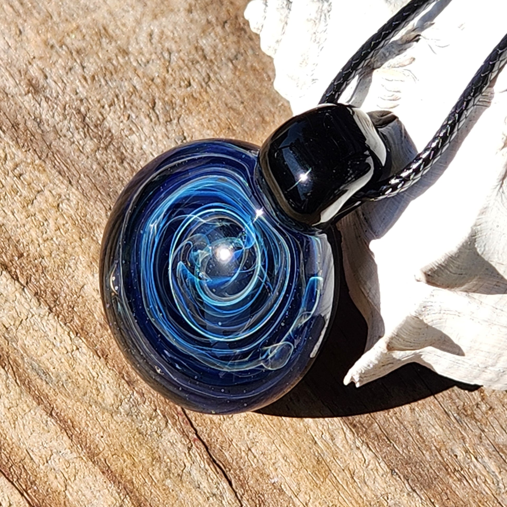 The unique combination of different tones silver fuming produces vivid blue hues where the colors meet, blending seamlessly with the whiter tones to create a swirling galaxy effect. Perfect as a gift for him or as a striking piece of cosmic art jewelry, this glass pendant necklace is a one-of-a-kind treasure. 🎁optional gift wrapping available, for many special occasions