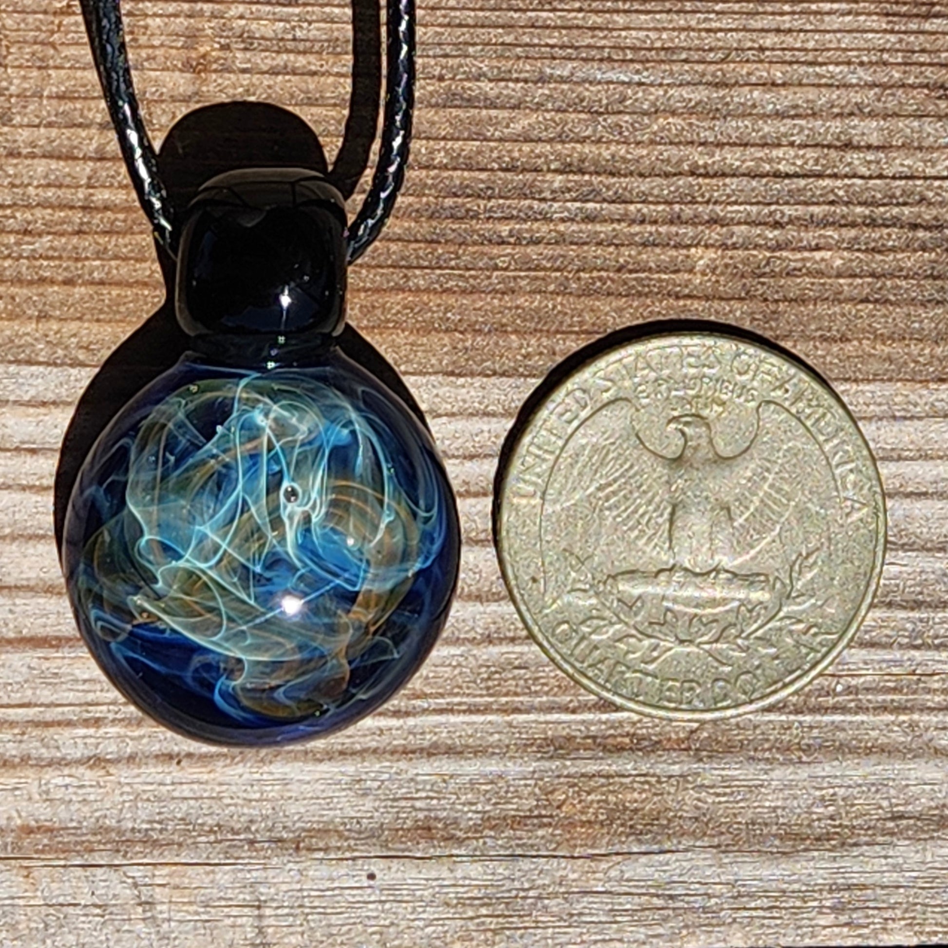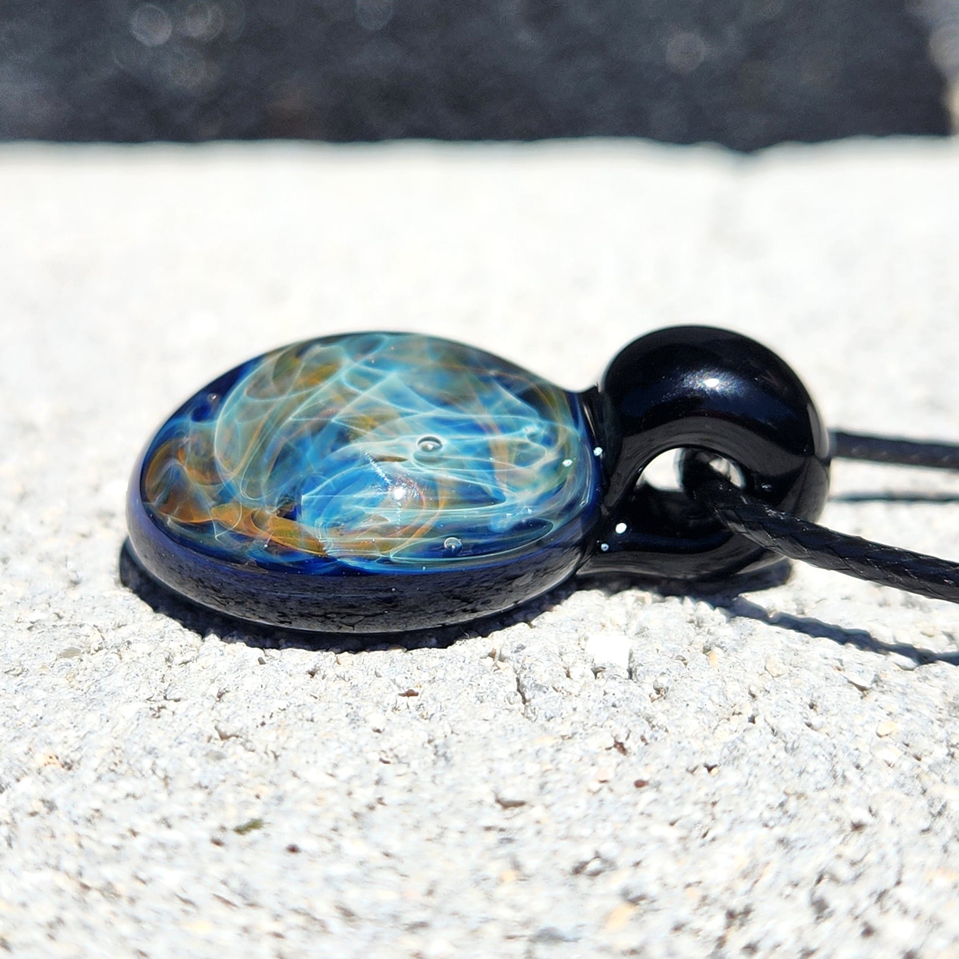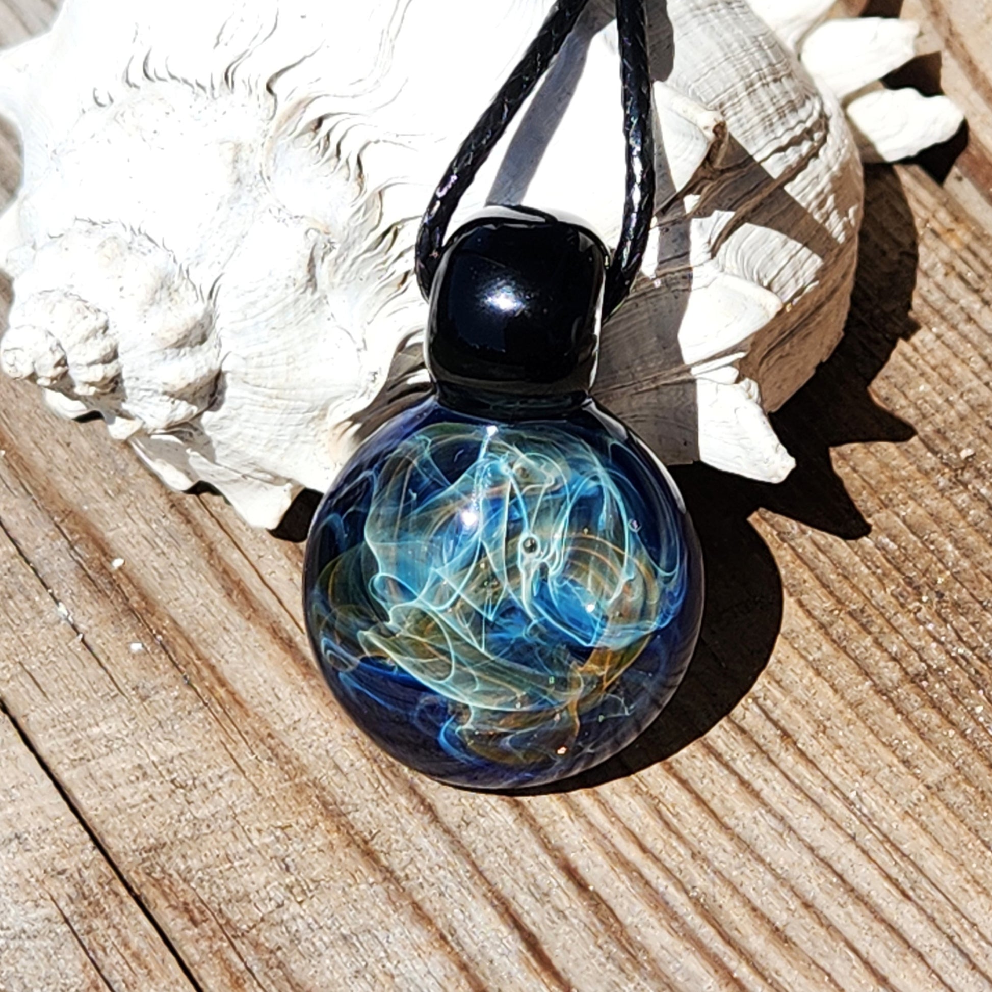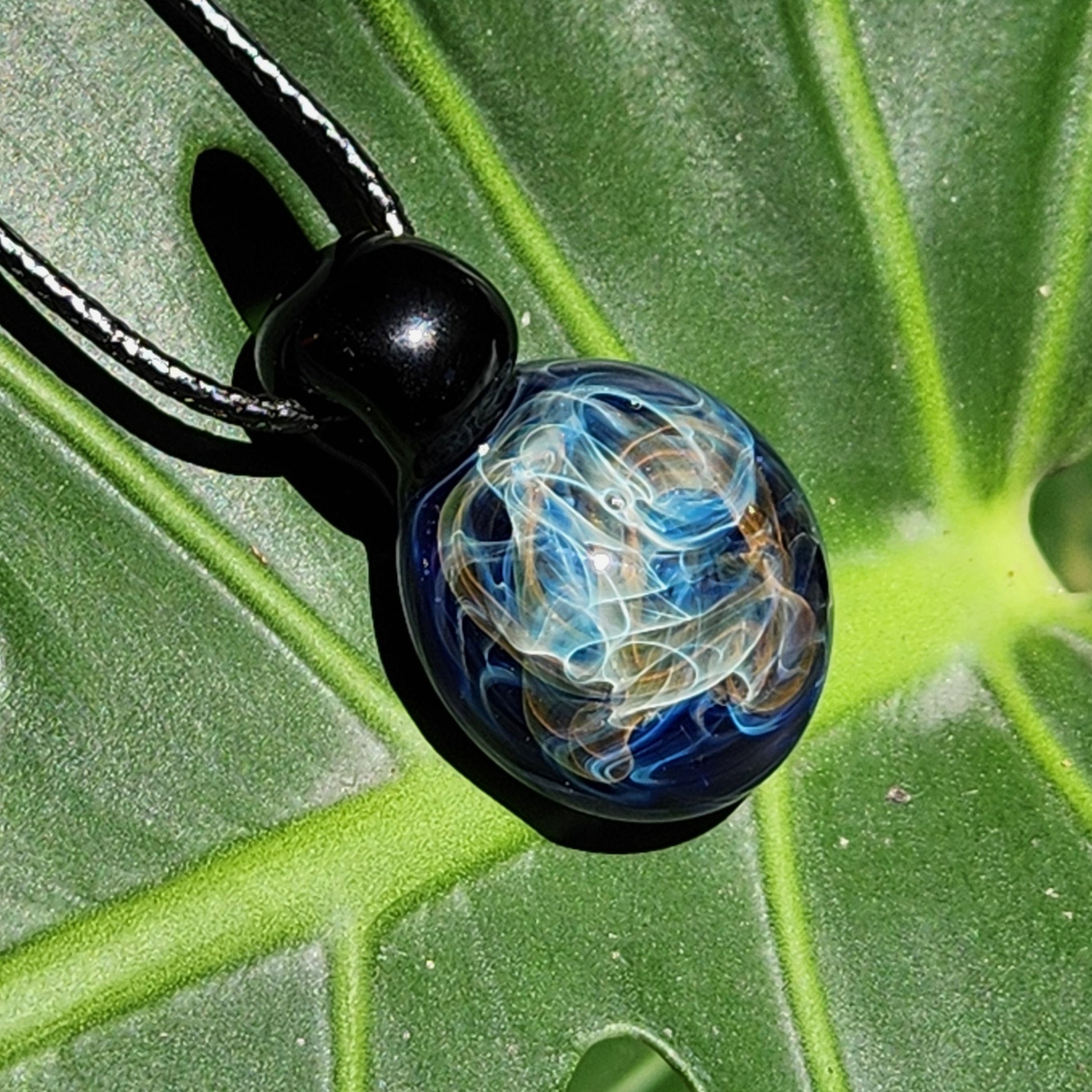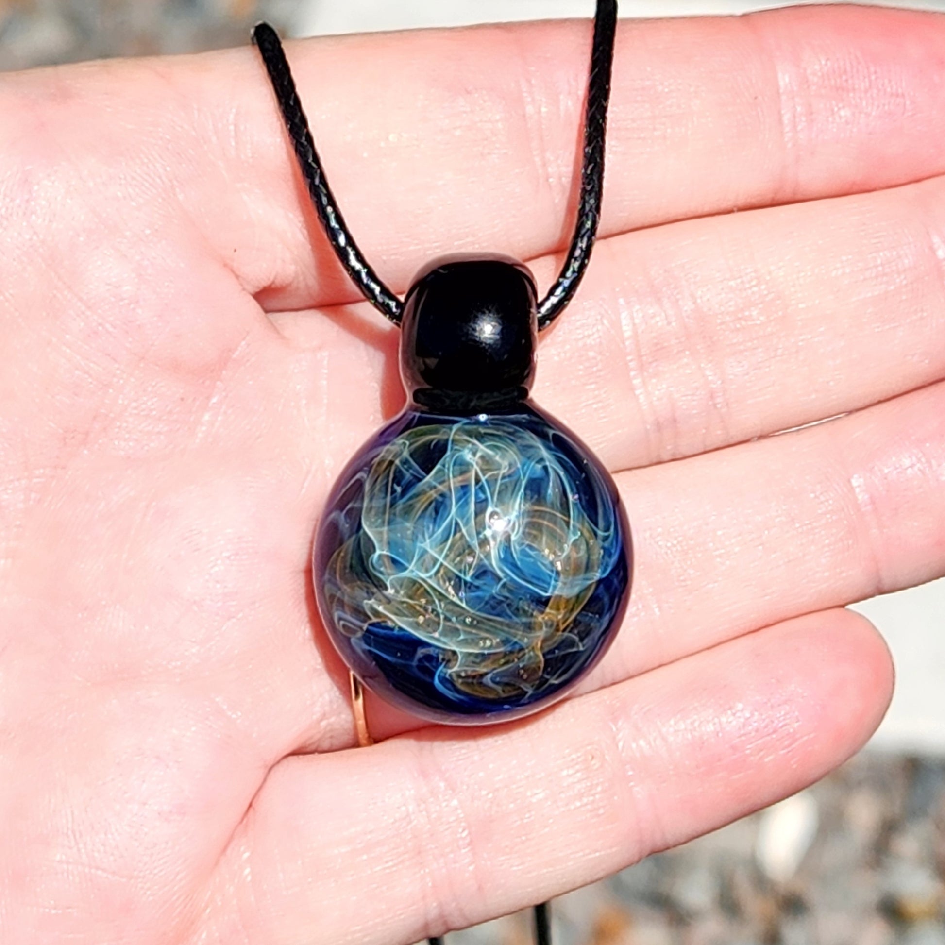 Every pendant is crafted from borosilicate glass, known for its strength and durability. The pendant pictured here is the exact one you will receive, completely unique and impossible to duplicate.