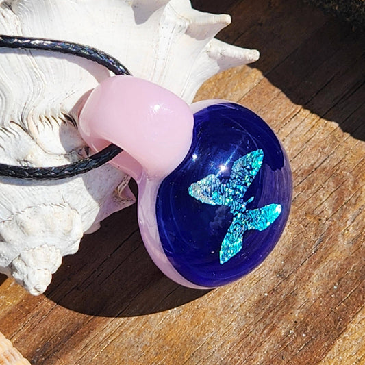 Blue and Pink Handmade Glass Pendant Necklace